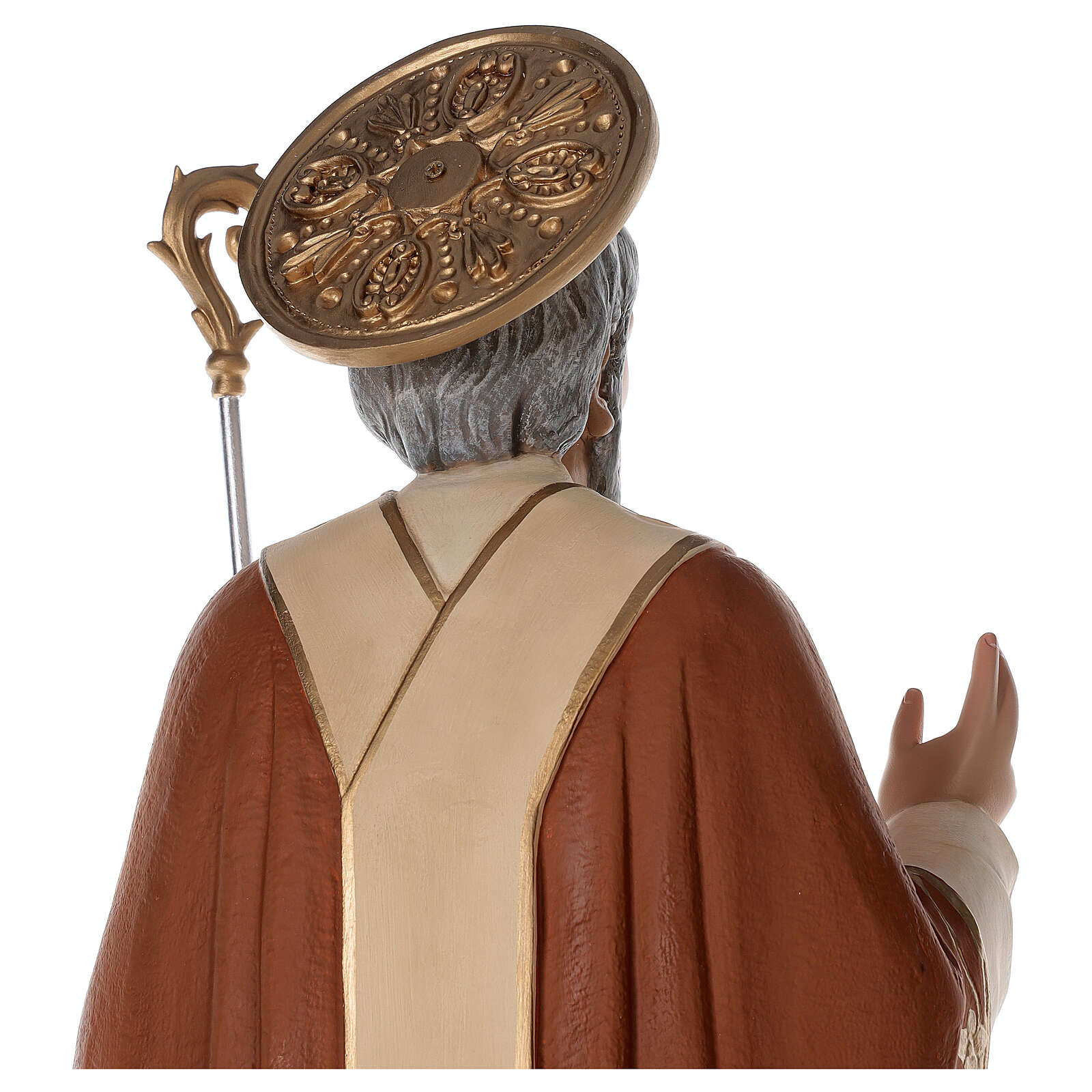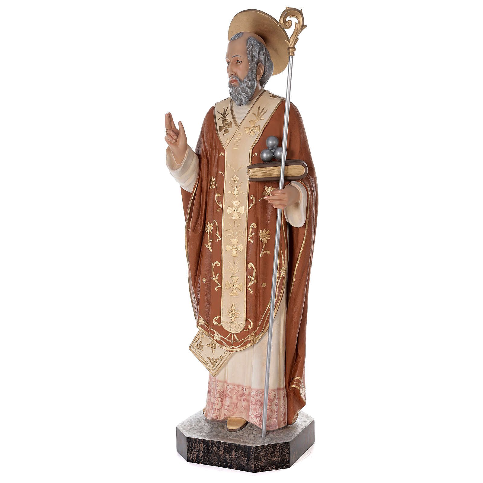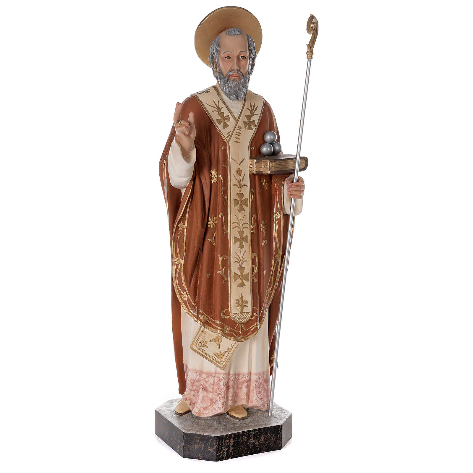 La statua di San Nicola di Bari da 85 cm è realizzata in vetroresina, tramite una lavorazione totalmente artigianale e dipinta interamente a mano con colori classici da abili artigiani qualificati.